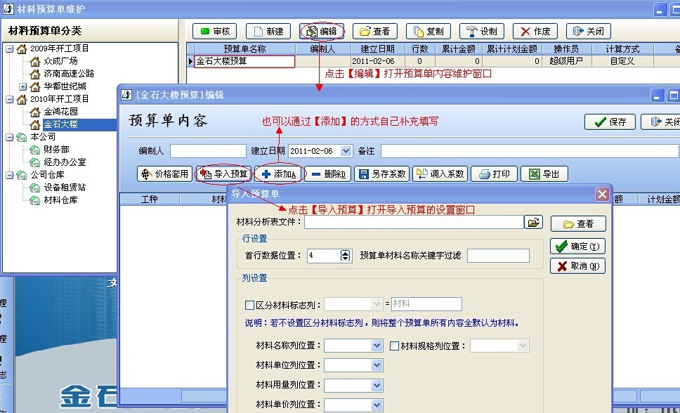 如何導入材料預(yù)算