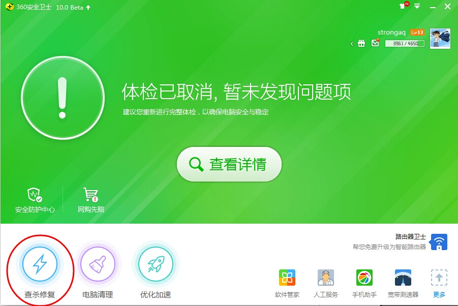 到服務器電腦上找到360安全衛士(截圖電腦為最新版360安全衛士,版本不同顯示可能有差距)打開,找到查殺修復打開