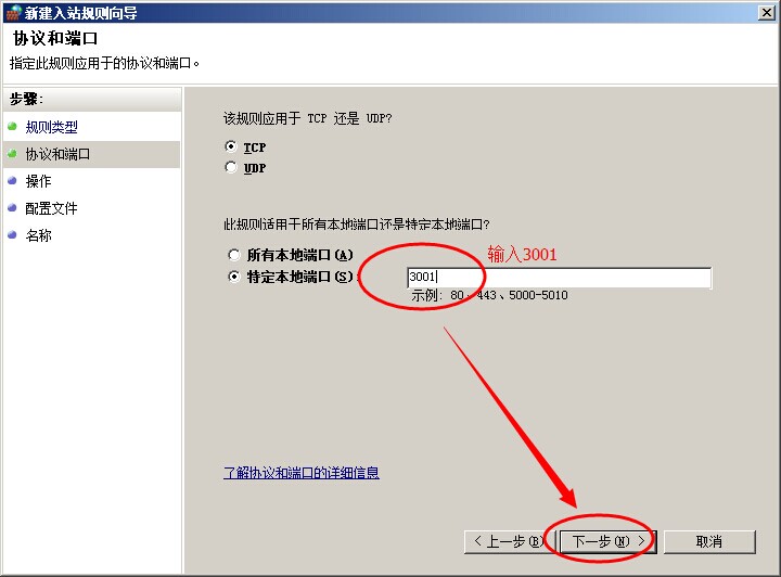 輸入3001,點下一步