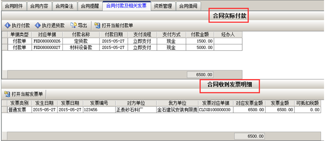 付款及發票可在“合同付款及相關發票”中查詢。如圖:
