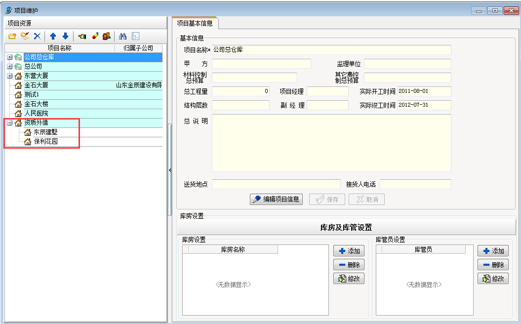 情況分析: 在工程項目資質掛靠管理中由于本工程款資金流向是經過我公司的,正規的管理辦法是在【項目維護】中建立一個項目來管理,如下圖: