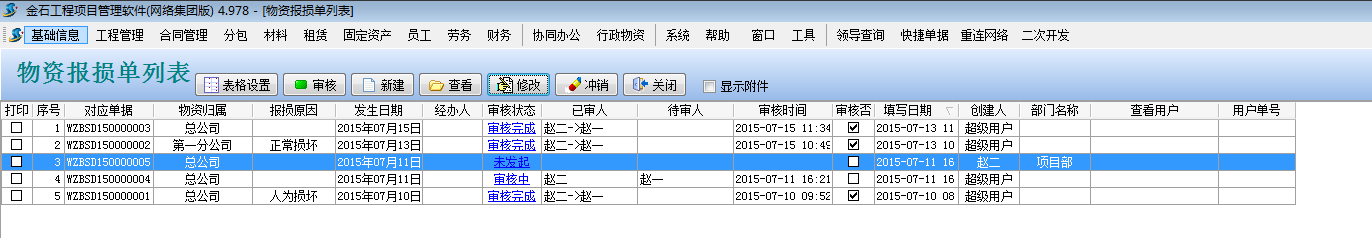 【物資報損單】是用來報損物資的業(yè)務單據(jù)。 類似【材料報損單】或者【設備報損單】,一個是針對物資報損,一個是針對材料或者設備報損。