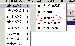 預(yù)算與實際對比,在財務(wù)菜單中第一項【其他費管理】,【其他費對比表】中查詢。