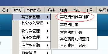 其他費用預(yù)算單,在工程項目管理軟件在財務(wù)菜單中第一項【其他費管理】,【其他費預(yù)算維護(hù)】中創(chuàng)建。