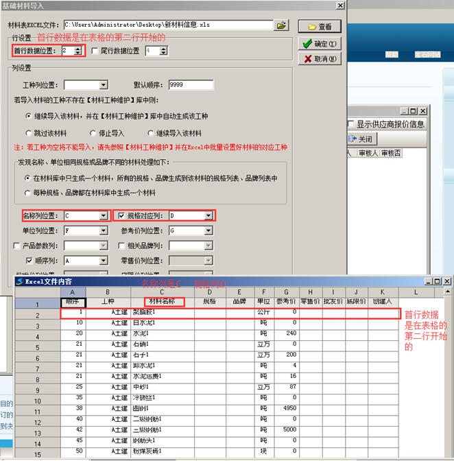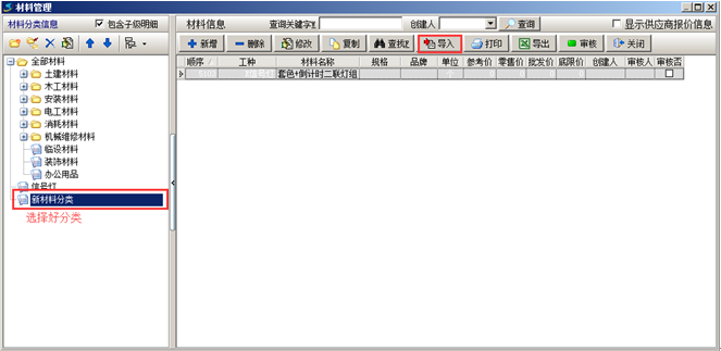 一般在建賬初期,基礎信息比較多,需要將基礎信息錄入到系統中的話工作量比較大。可利用批量導入的功能將基礎信息導入到系統中。首先需要講基礎信息整理到Excel表格中,方便導入。以材料信息的導入為例,其他信息的導入可參照。