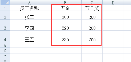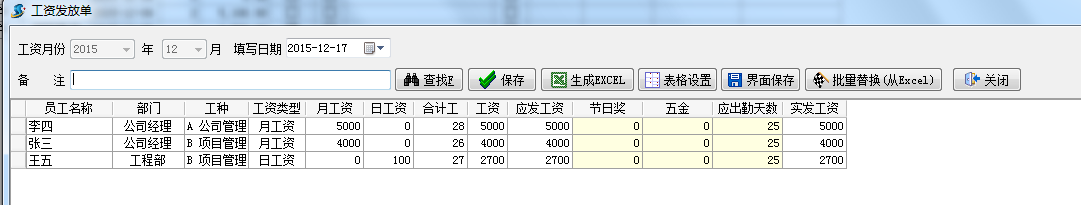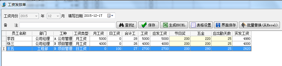 當前新生成的工資表中,員工的五金及節日獎價均為0,如圖: