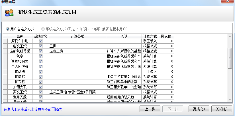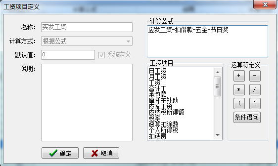 具體工資項目定義操作方法參見幫助文檔“如何根據自己的企業情況設置工資項目定義”