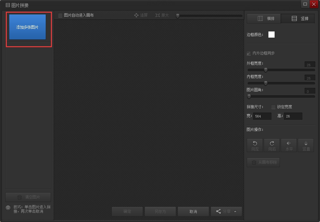 2.在圖片拼接里,我們點擊左側的添加多個圖片
