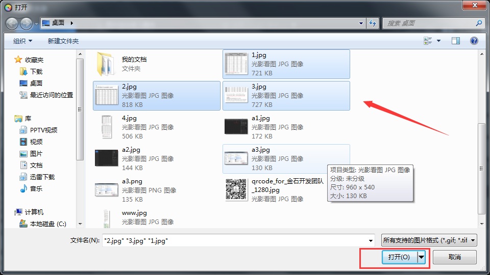 3.選擇我們需要拼接的圖片,點擊打開