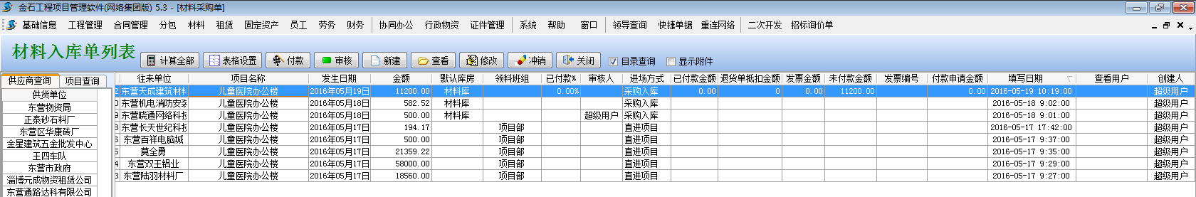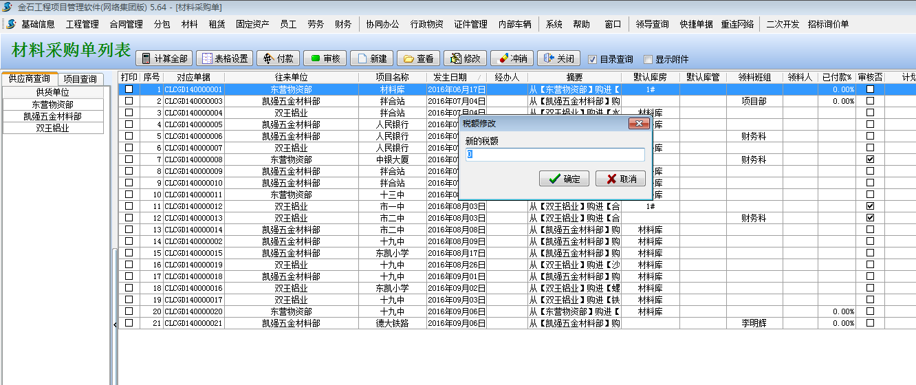 工程項目管理系統為適應“營改增”政策升級到5.4版本以后,如下圖: