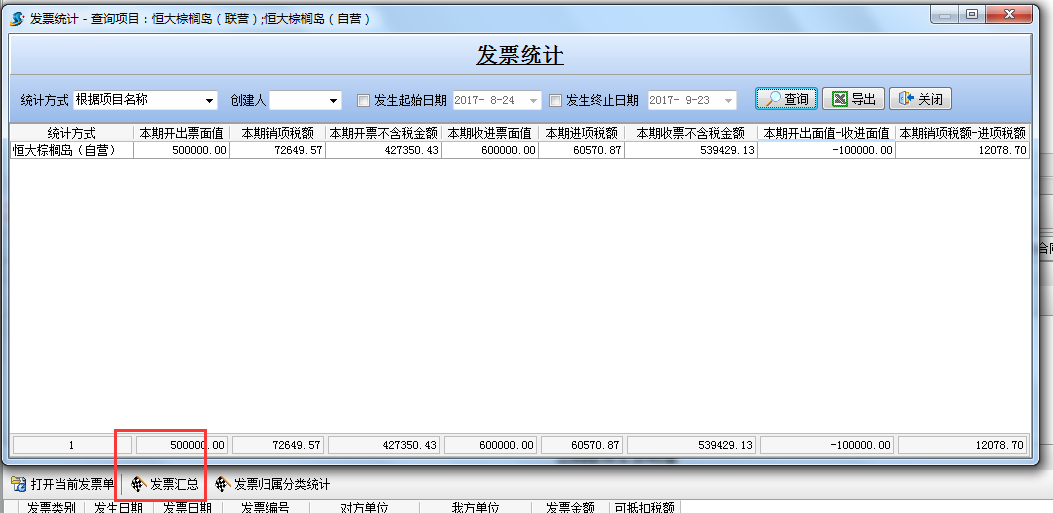 在“分包合同”內發票匯總查詢(查詢聯營單位進項和銷項)