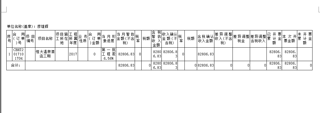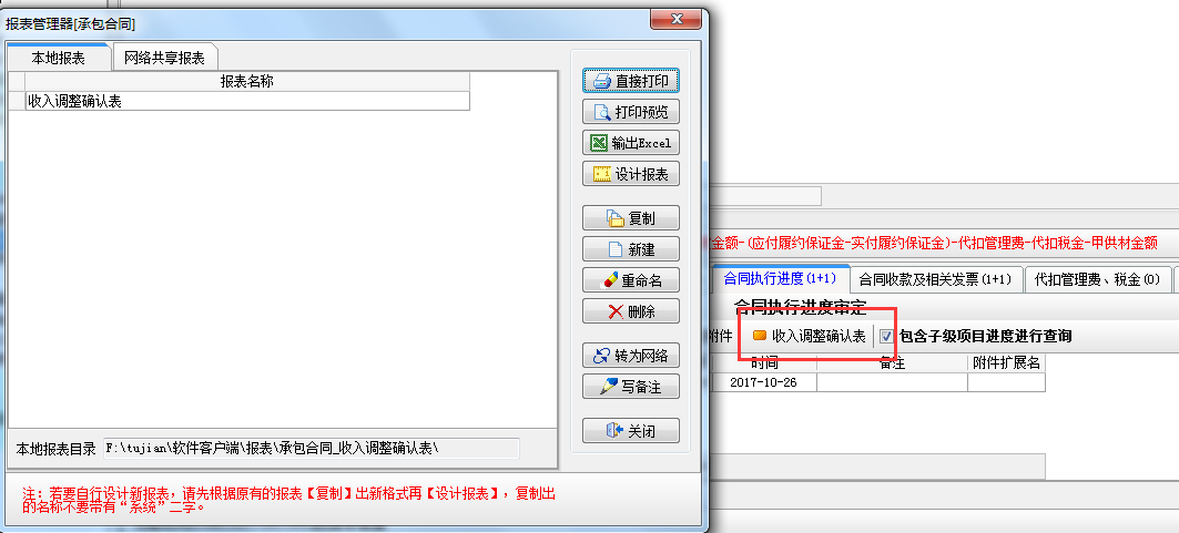 六、工程項目管理軟件打印收入調整確認表
