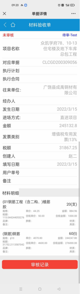 金石工程項(xiàng)目管理軟件新增單據(jù)掃二維碼查看功能
