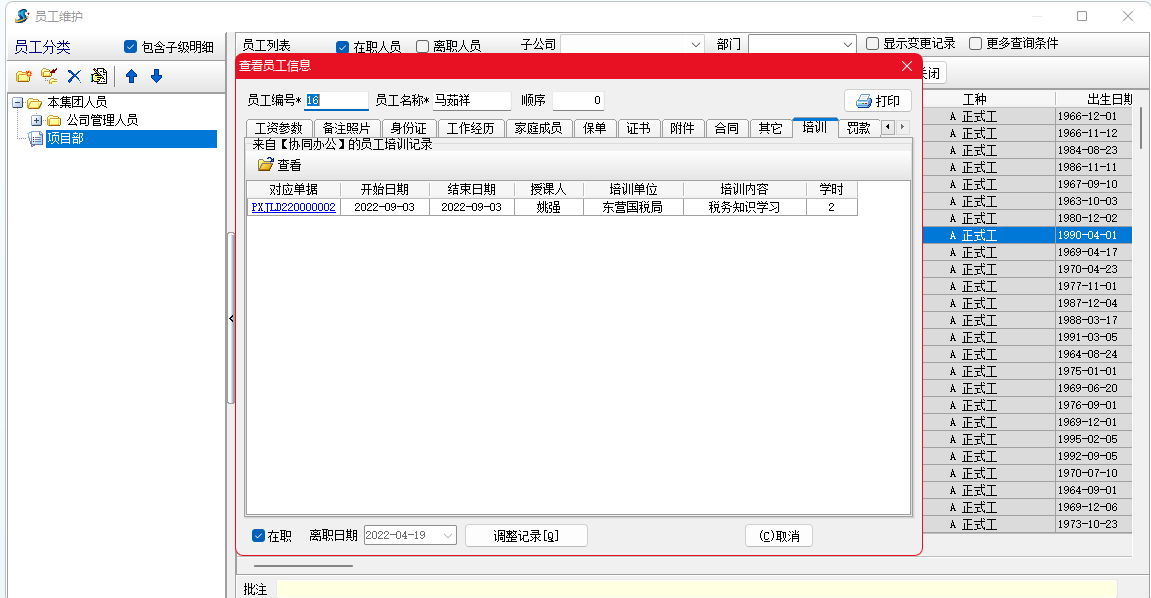 金石工程項(xiàng)目管理軟件可以填寫員工培訓(xùn)記錄,并生成到員工維護(hù)。