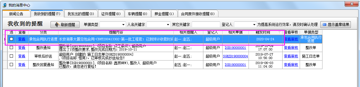 首頁 ? 學習中心 ? 中標管理 ? 承包合同回款提醒 ?