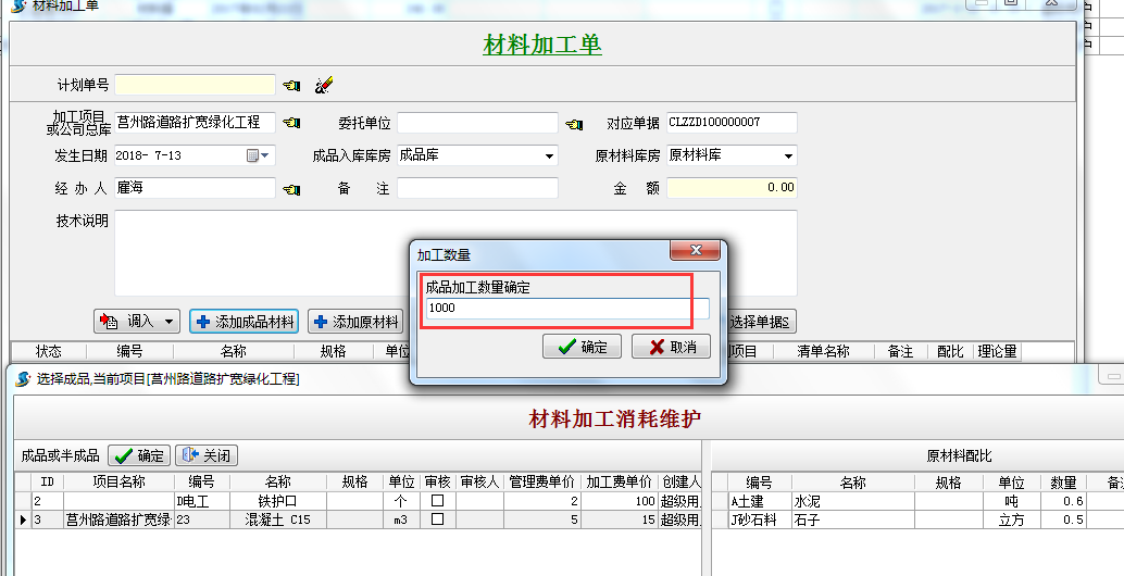 原材料的消耗配比以現(xiàn)場做實驗為準,為避免原材料的生產浪費,軟件提供解決方案如下: