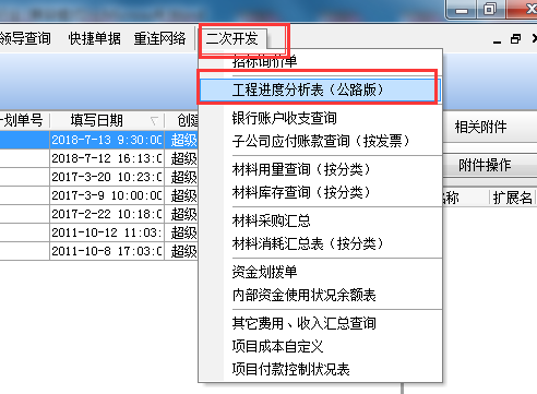 在軟件“二次開發(fā)” →“工程進度分析表(公路板)”