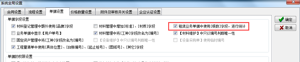 1、在【系統(tǒng)全局設(shè)置】的【單據(jù)設(shè)置】中,有一個(gè)開關(guān)在租賃管理中,特別是在結(jié)算統(tǒng)計(jì)時(shí)非常有用,這里做特別說明。如下圖所示