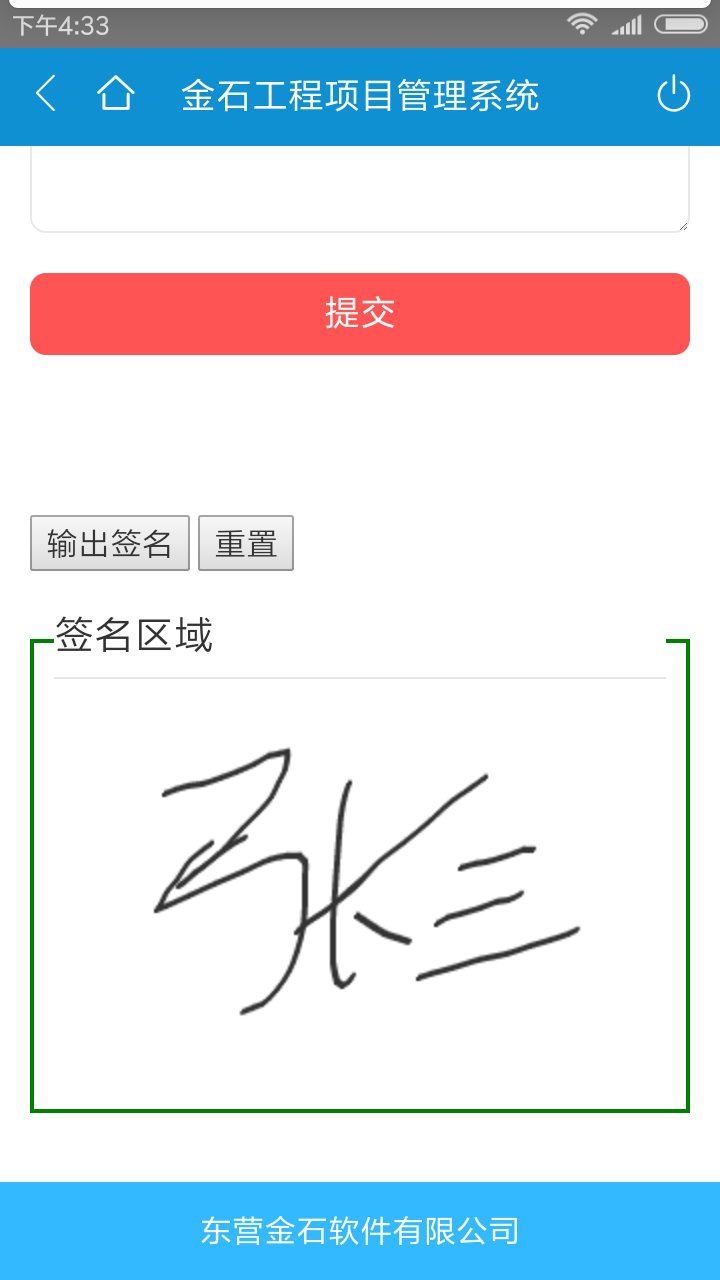 在項目施工過程中,現場審核單據需要打印后才能手動簽字,效率比較低,為此金石工程項目管理軟件開發了審核過程中使用手機電子簽名。具體的功能實現如下: