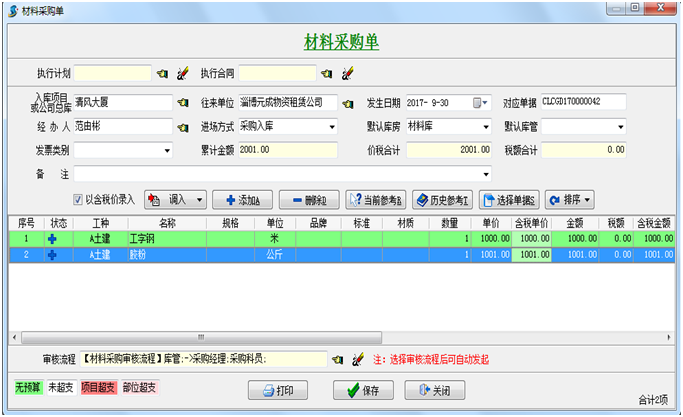 1.首先我們建立一個“材料采購單”和簡單的審核流程