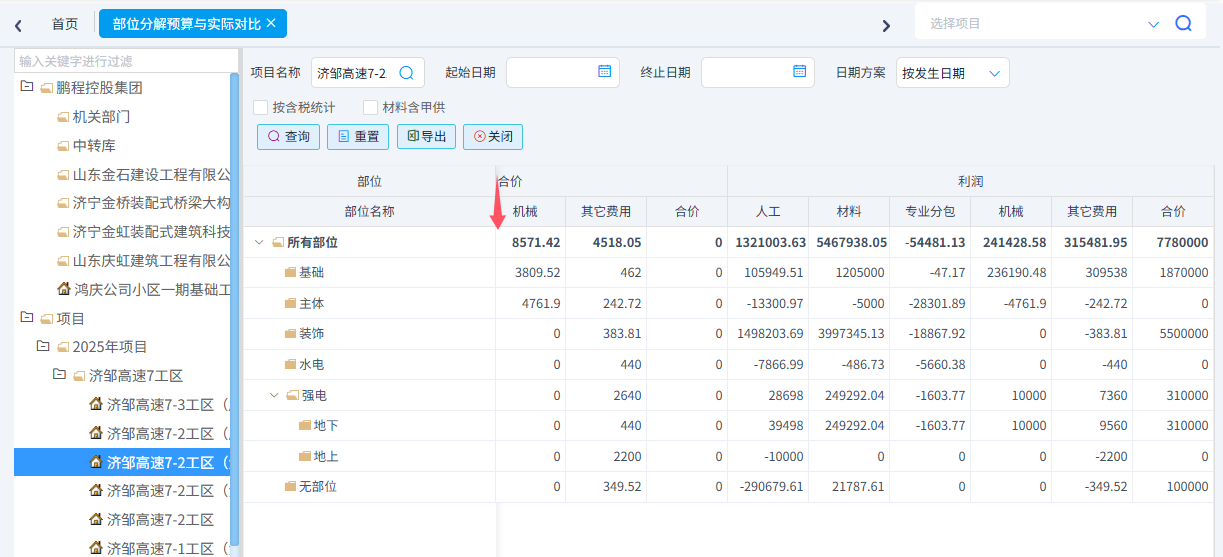 可以根據需求統計成本清單進度、合同清單進度(四算對比)、項目部位實際發生以及部位分解預算與實際發生。