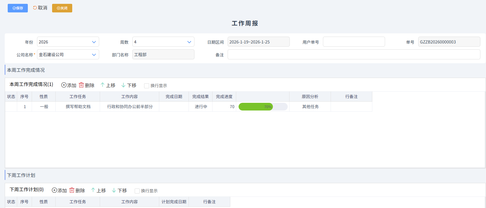 這樣在下周填制做工周報時,可以直接從工作計劃中調入,如下圖所示: