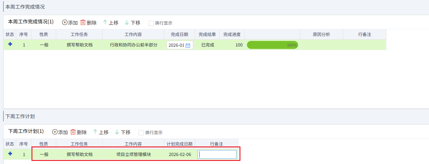 本周工作完成后,可以添加下周工作計劃,如下圖所示: