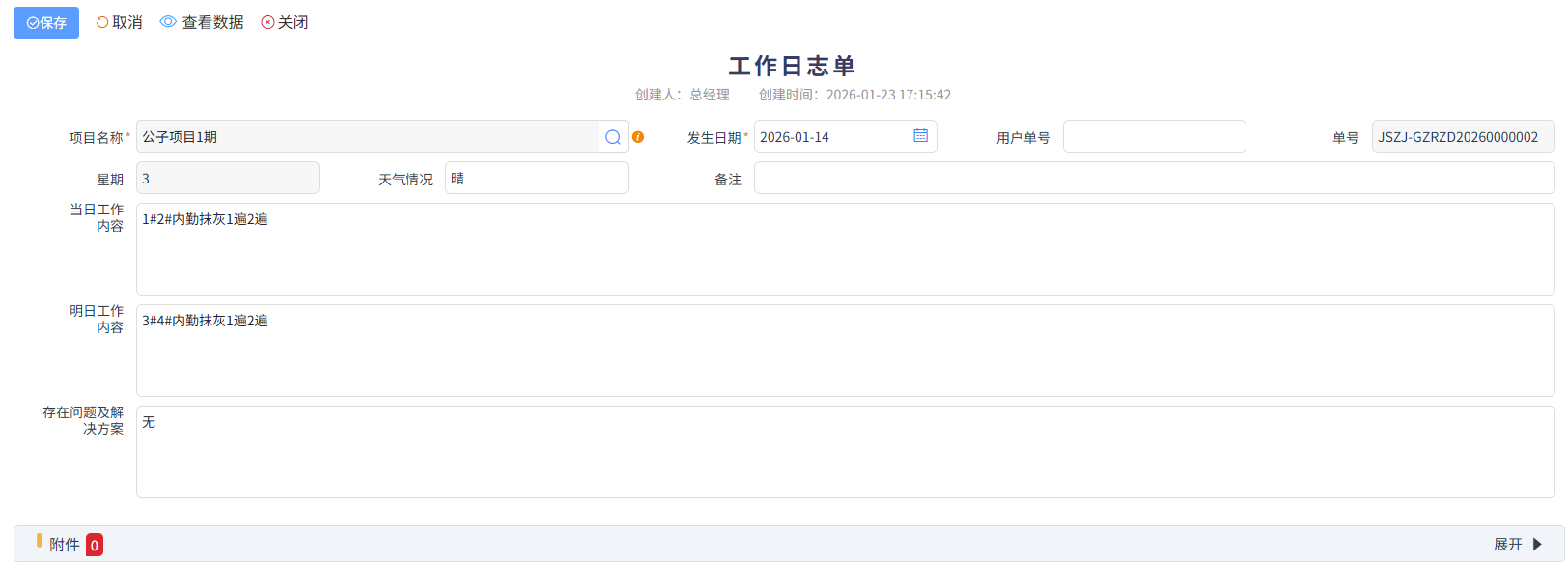 工作日志單主要體現當日工作內容、明日工作內容以及存在的問題和解決方案,如下圖所示: