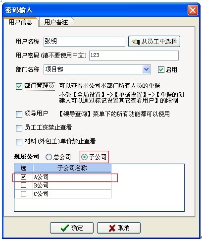 4、子公司用戶(可實現 項目授權、項目與項目之間的單據相互保密)