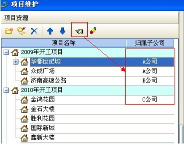 (4)規屬于總公司的用戶可以查看或操作【項目維護】中所有項目。規屬于子公司的用戶只可以使用【項目維護】中被其子公司授權的項目。