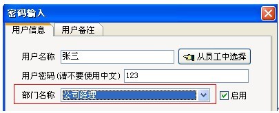 (5)設置好用戶的部門,規屬公司,最后還有重要的一步操作就是給用戶進行菜單功能授權。如下圖: