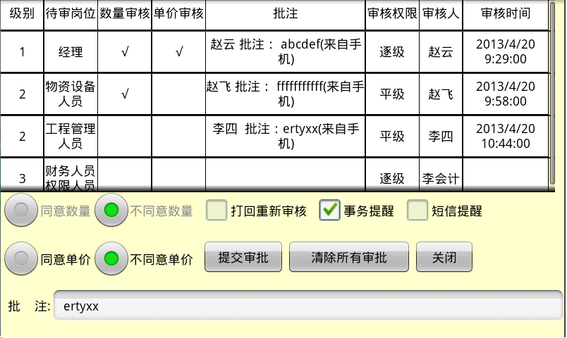 6. 審核中心(包括:采購計劃單審核、分包驗收單審核、付款申請單審核、員工請款單審核、員工請假單審核)