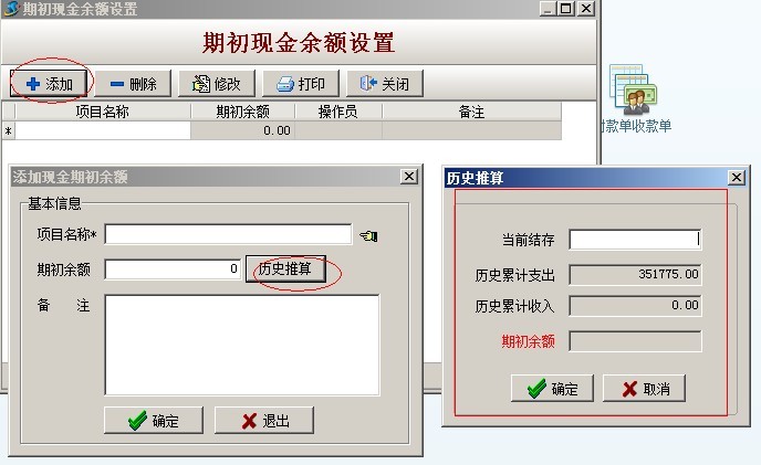 在登記時,把期初賬款錄入到,期初余額中即可。另有歷史推算功能,可根據(jù)歷史發(fā)生的業(yè)務(wù)單據(jù)以及現(xiàn)在余額推算出期初余額。如下圖: