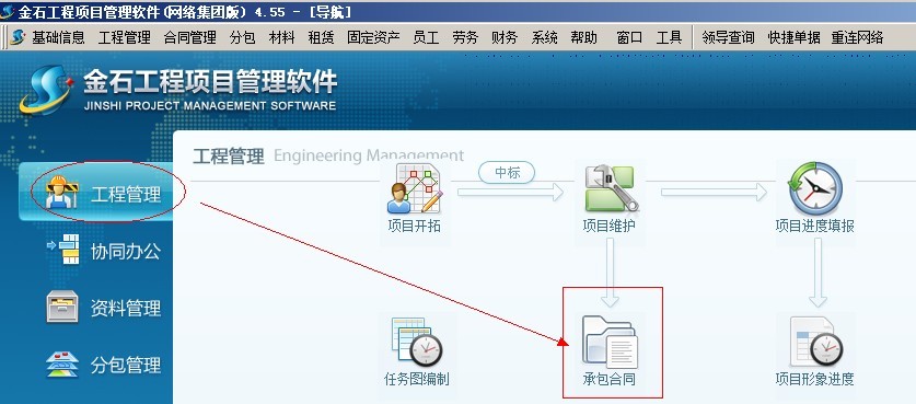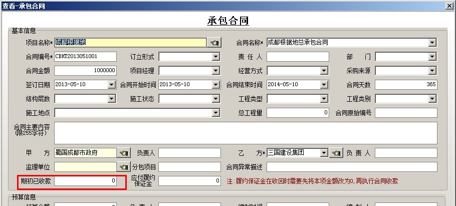 在建工程的期初已收工程款(在使用軟件之前,已經(jīng)收到的工程款),要在承包合同中錄入。如下圖: