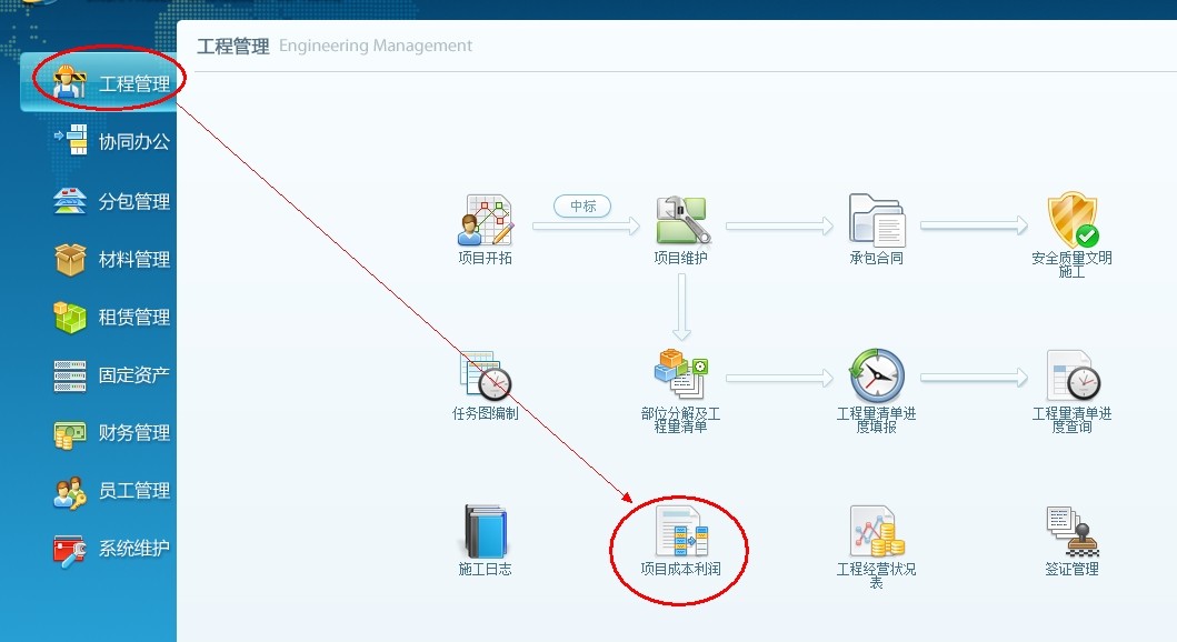 點(diǎn)擊導(dǎo)航欄工程管理-----項(xiàng)目成本利潤(rùn)