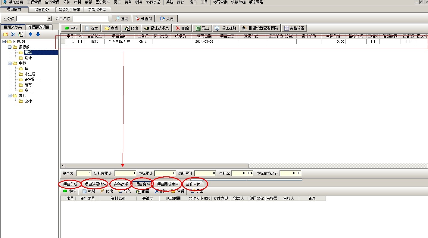 項(xiàng)目開拓建立之后,審核,然后可以錄入投標(biāo)項(xiàng)目的一些基本資料