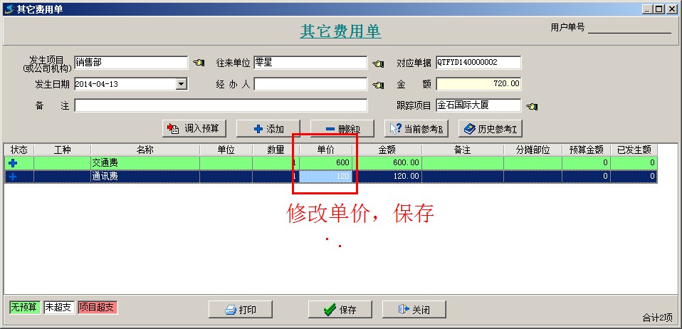 2、投標(biāo)之前發(fā)生的費(fèi)用,可以錄入【其它費(fèi)用單】。